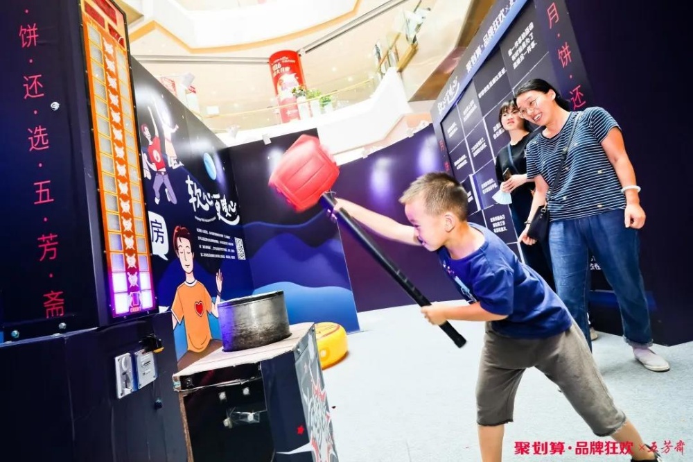 大型“暴力月餅”等你隨意打擊,可以把壓力轉換成動力,捶打能量測試機,捶打值可兌換減壓捏捏樂玩具。
