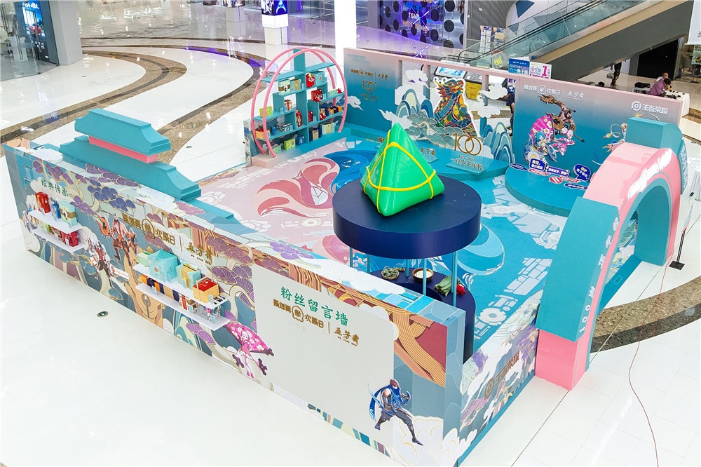 五芳齋不光是將峽谷搬上了禮盒,也搬到了線下。五芳齋同步在嘉興龍鼎萬達搭建了一家沉浸式體驗峽谷主題快閃店。這家主題快閃店參考王者峽谷元素,造出王者峽谷內(nèi)的五芳齋端午集市,五芳齋化身峽谷谷主,號召峽谷英雄速來接受挑戰(zhàn),開啟五芳齋百年粽味禮盒,豐富玩法賺足眼球。
