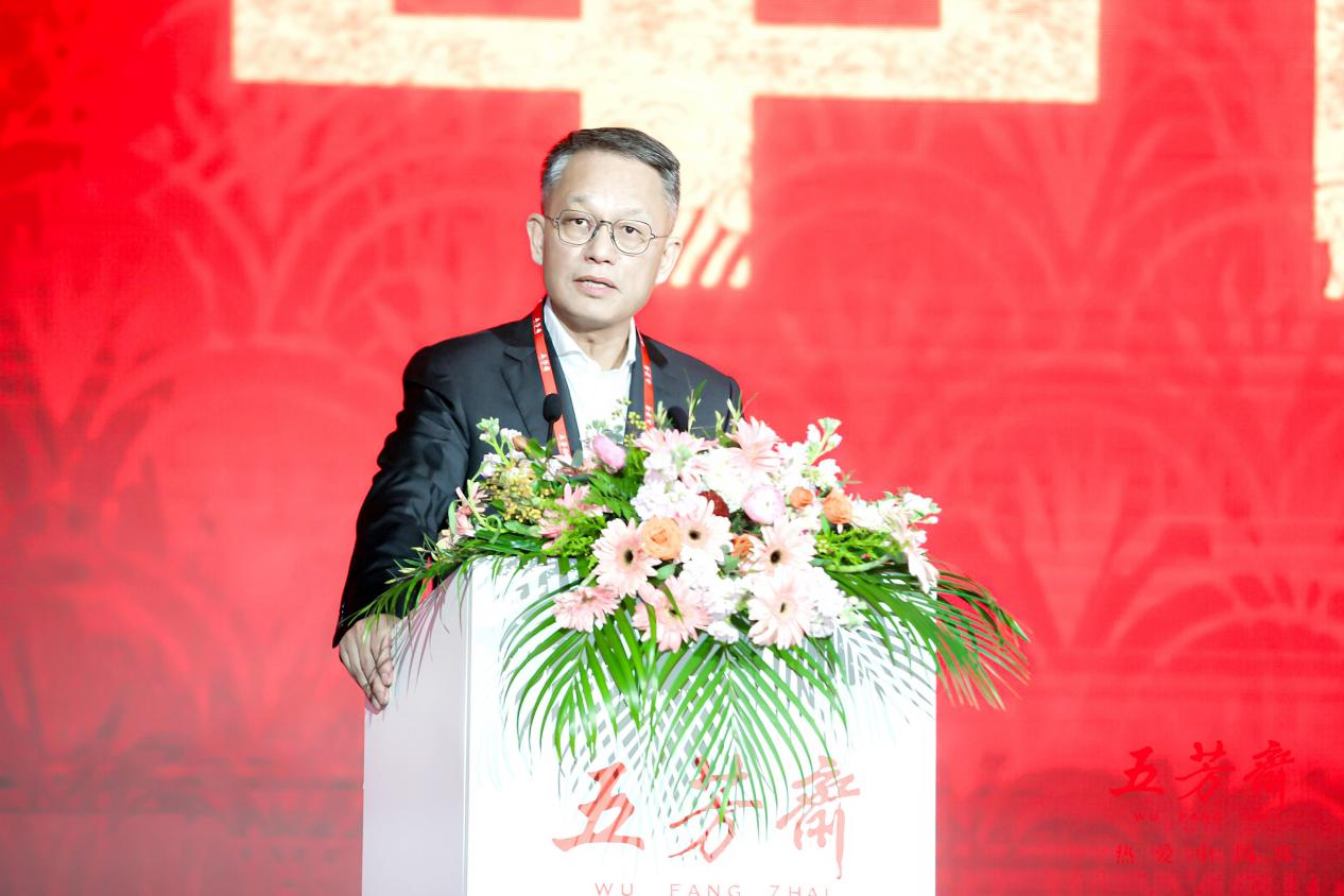 發(fā)布會伊始,浙江五芳齋實業(yè)股份有限公司董事長厲建平先生致歡迎辭。厲建平董事長表示,五芳齋始終緊跟國家戰(zhàn)略,始終堅守匠心,守正創(chuàng)新,成為南湖畔極具特色的城市名片。多年來,五芳齋深化實施“糯+”戰(zhàn)略,堅持守護(hù)和創(chuàng)新中華美食,百歲五芳齋逐步形成多引擎驅(qū)動未來增長的新局面。