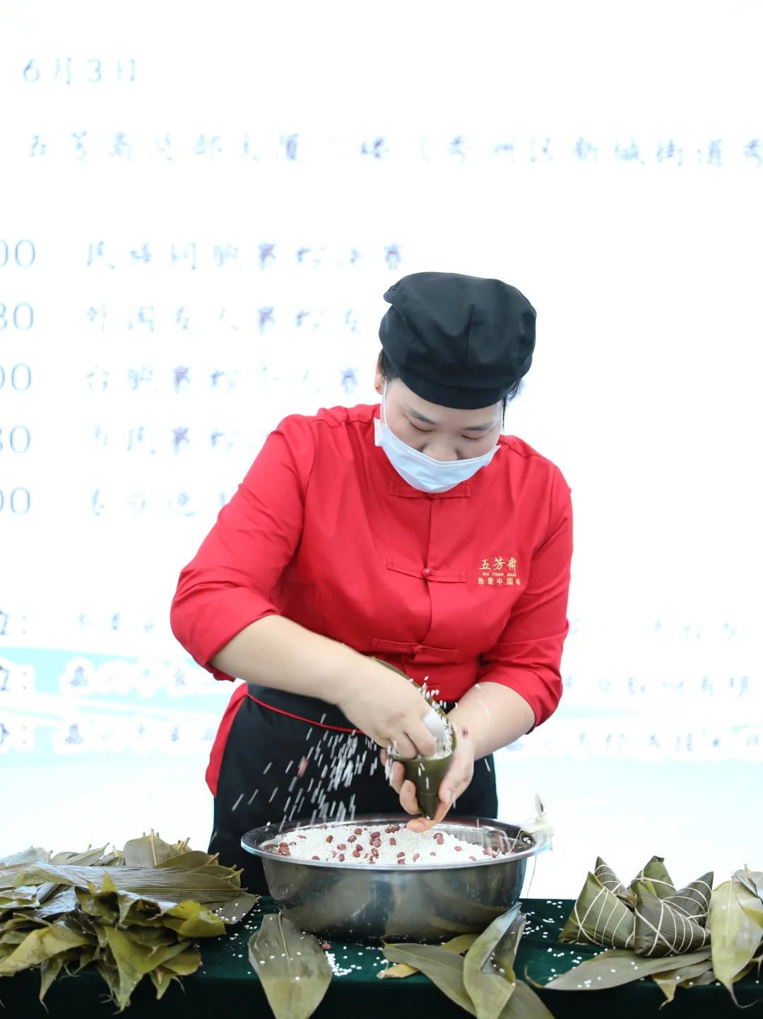值此端午佳節(jié)之際,胡建民大師還現(xiàn)場(chǎng)為大家展示五芳齋這個(gè)百年老字號(hào)特有的裹粽手法。