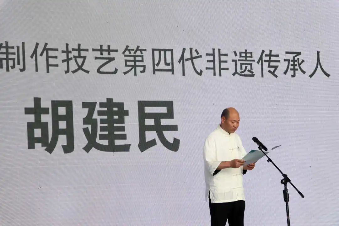 在“嘉有非遺”品牌發(fā)布儀式上,嘉興市委組織部?jī)尚曼h建處處長、嘉興市黨群服務(wù)中心主任張勝慧與嘉興市文化廣電旅游局公共服務(wù)處(非物質(zhì)文化遺產(chǎn)處)處長劉靖共同打開了“嘉有非遺”卷軸。