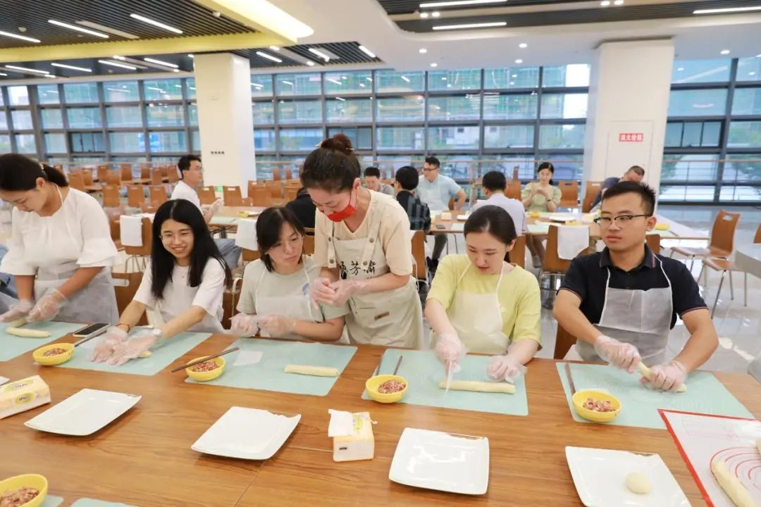 活動現(xiàn)場,五芳齋糕點(diǎn)師傅耐心細(xì)致地向大家講解示范月餅制作方法。大家興致高昂,拿起面團(tuán),包餡、壓模,以幸福做皮,思念為餡,把團(tuán)圓的心意包裹在月餅里,將節(jié)日的祝福融入在美食中。